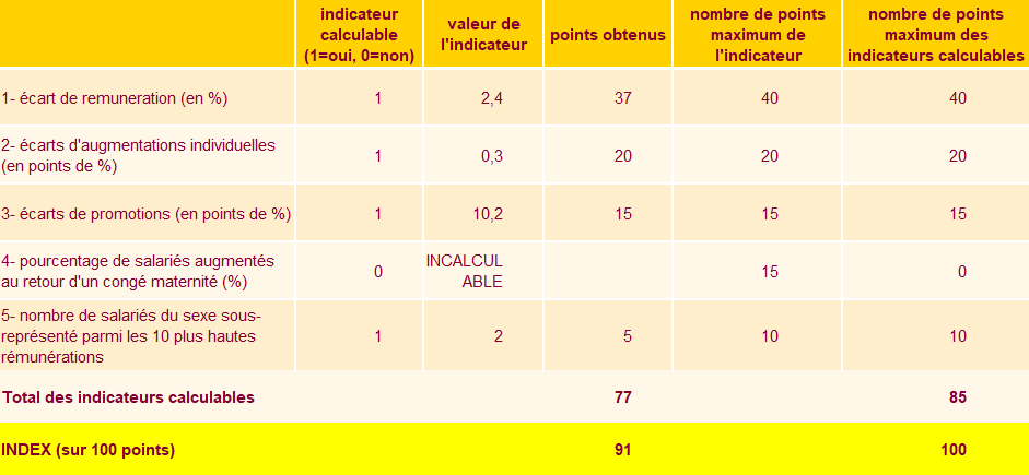 INDEX DE L'EGALITE PROFESSIONNELLE : 91/100